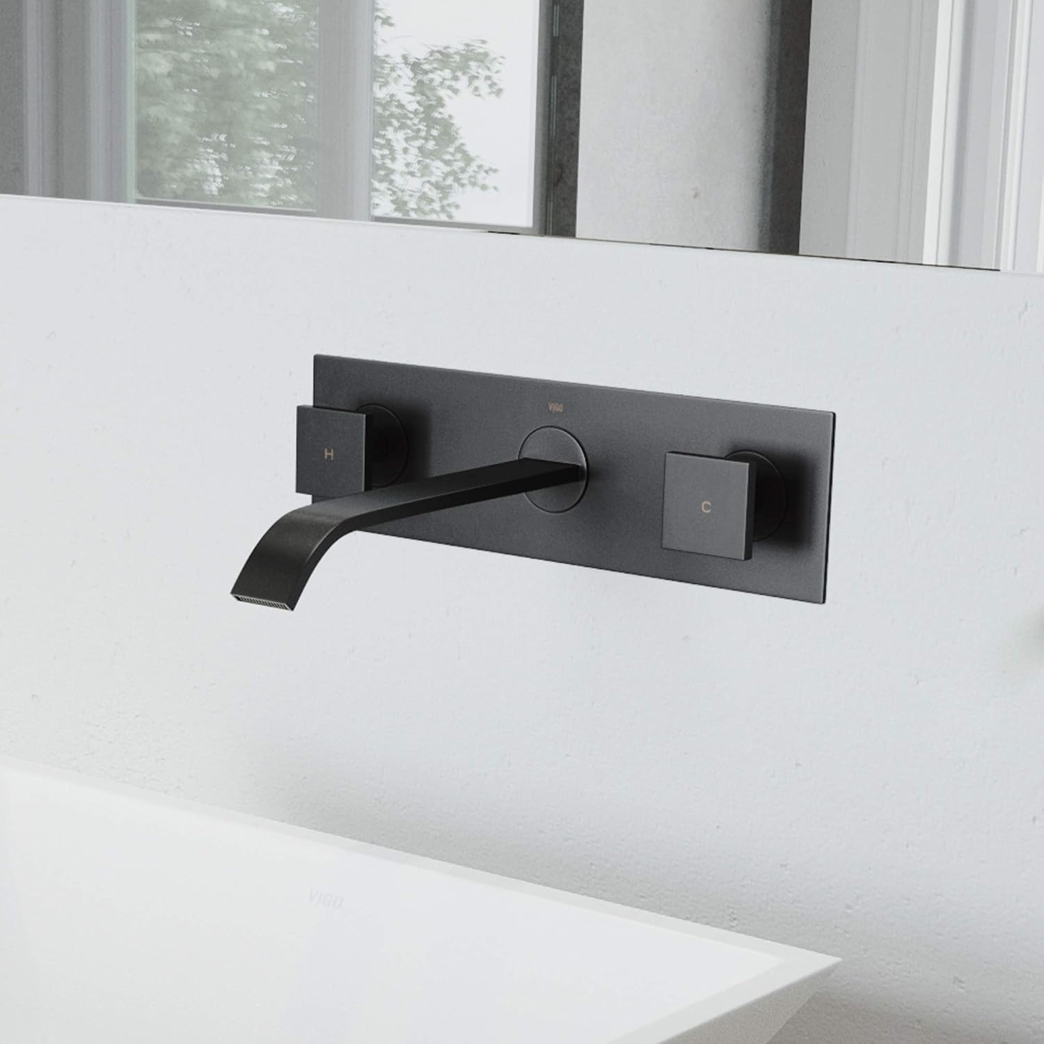 ELEVATE YOUR EVERYDAY LIVING WITH VIGO Create a luxurious space with VIGO Titus Matte Black Wall Mount Faucet. Everything is made with top-notch materials with a luxury finish so you can enjoy a stylish yet durable bathroom fixture for years to come. Our two-hole wall mounted faucet bathroom is designed with an arched spout. It delivers the water in a flat thin ribbon that allows for a silent water flow for a serene and spa-like vibe. The sleek and functional design can add a sophisticated visual appeal to your bathroom aesthetic. Our Titus collection comes in four elegant colors - chrome, brushed nickel, matte black, and matte brushed gold. You can choose which one best matches and enhances your bathroom decor. RESISTS CORROSION AND TARNISH Our solid brass in-wall faucets are corrosion and tarnish-resistant, built to exceed industry durability standards. It comes with hot and cold washerless brass cartridges and a nozzle that resists mineral buildup for easy cleaning and maintenance. It also features two levers for effortless water temperature control. Our modern wall mount bathroom faucet also comes with all the mounting hardware you need for convenient installation. STYLISH AND FUNCTIONAL DESIGN Our wall mount faucet bathroom sink can help with water conservation. It features a 1.2 GPM spout designed to save water without sacrificing performance. It also has a 8" spout that provides you with a wider counter space that compliments minimalist bathroom style. Our wall mount vessel sink faucet is designed with clean lines and sleek silhouettes that pair beautifully with vessel sinks and matching sink drains available from VIGO. Give your bathroom a modern and luxurious feel! Grab our VIGO Titus Matte Black Wall Mount Faucet and create a space that you can enjoy for years to come.